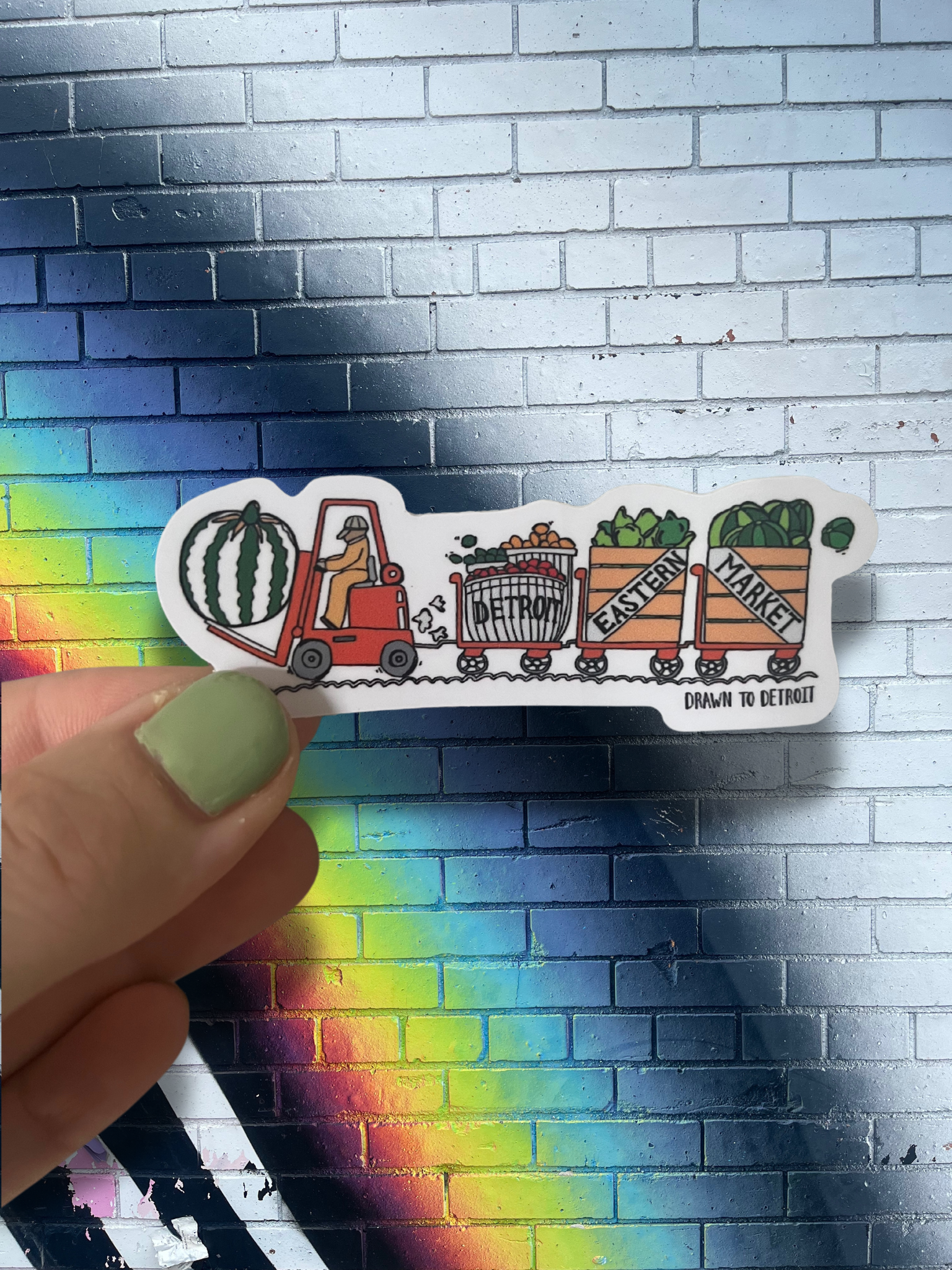 This one-of-a-kind sticker is crafted in Michigan and measures around 3 x 2.5 inches. Made from matte vinyl, it's great for adhering to any smooth surface. Go ahead, proudly display your affection for Eastern Market with this hand-drawn sketch!